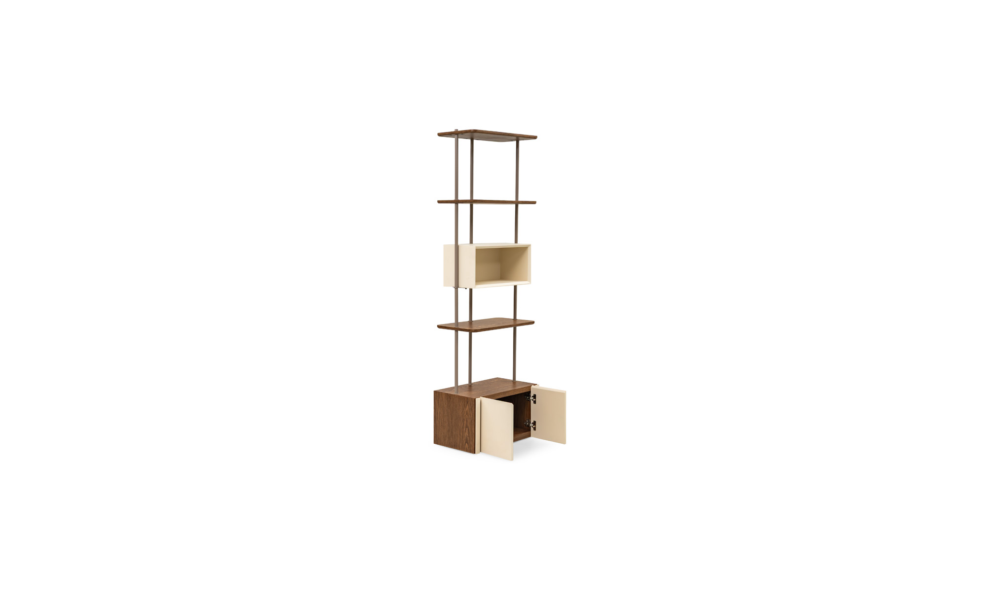 | Madera y pintura | Lámina en Roble Europeo > Sellador acrílico y laca poliéster > Acabado en poro semiabierto. Estructura metalica en color Taupe |