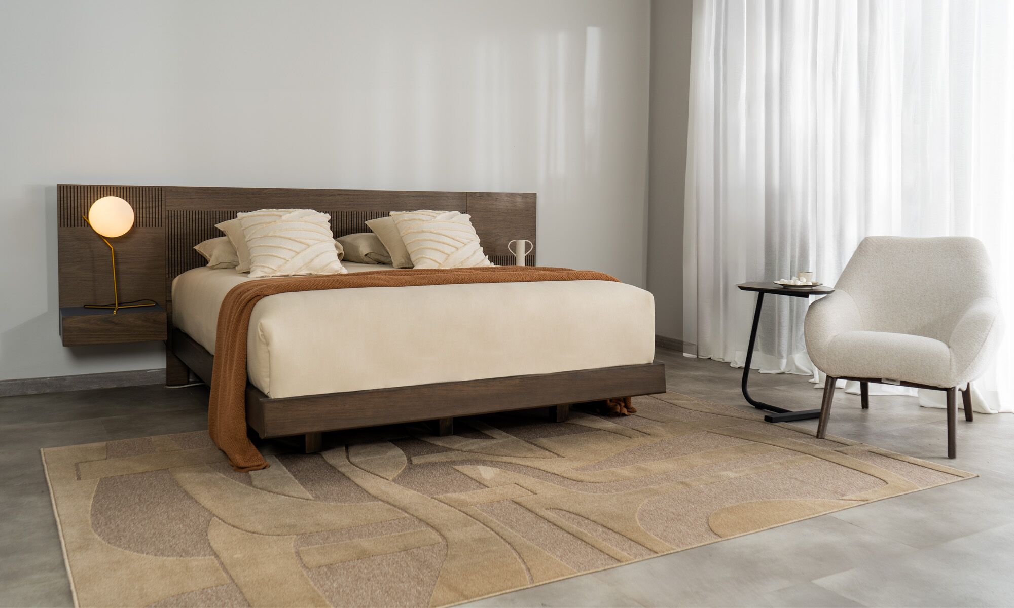 | Madera y pintura | Cabecero en roble italiano y pino radiata y Base en pino radiata |