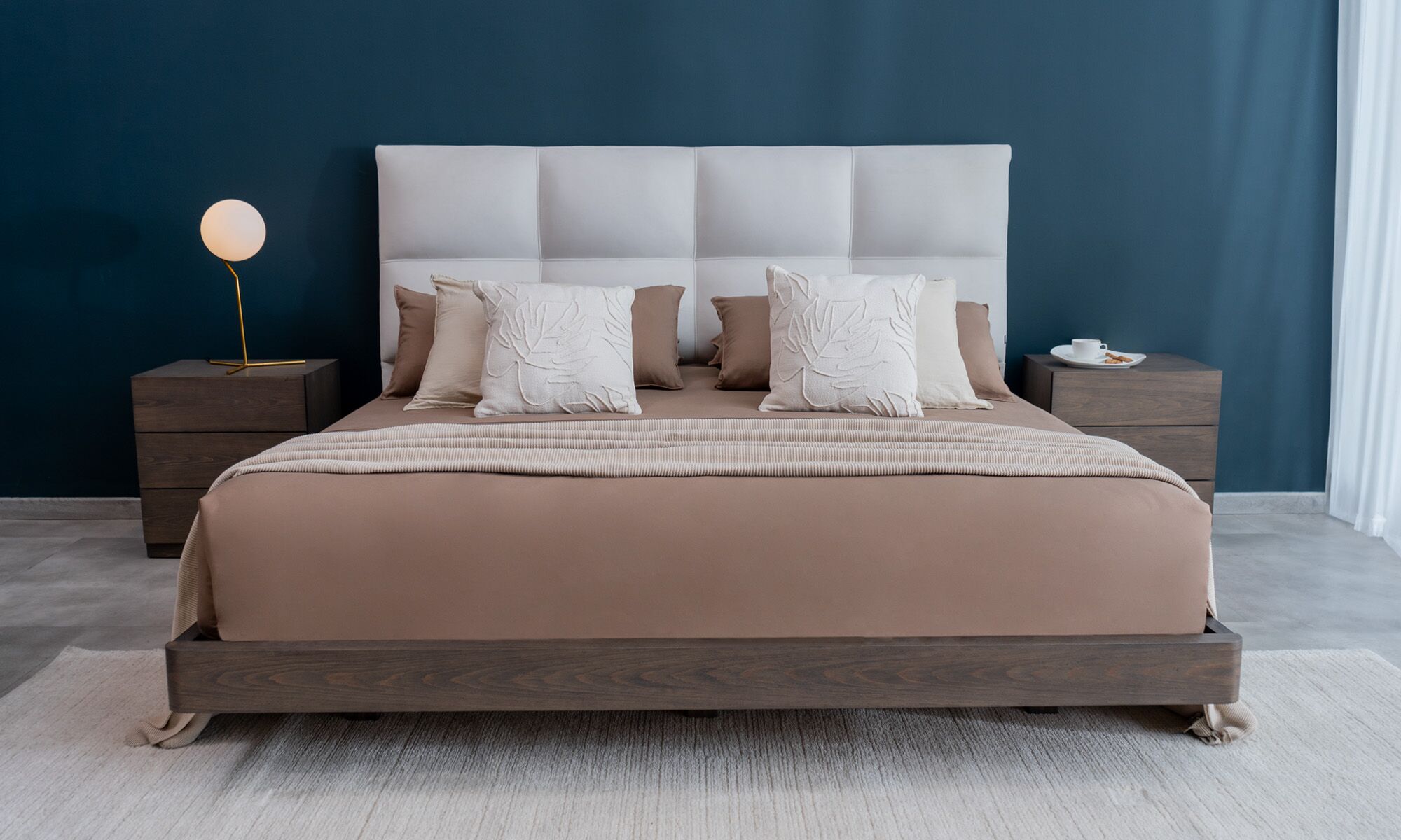 | Madera y pintura | Cabecero: Estructura en Pino Radiata Chileno, reforestada seca e inmunizada. Largueros: Lámina en Roble Europeo > Estructura en Madera de alta densidad > Sellador poliéster y laca acrílica > Acabado en poro semi abierto. |