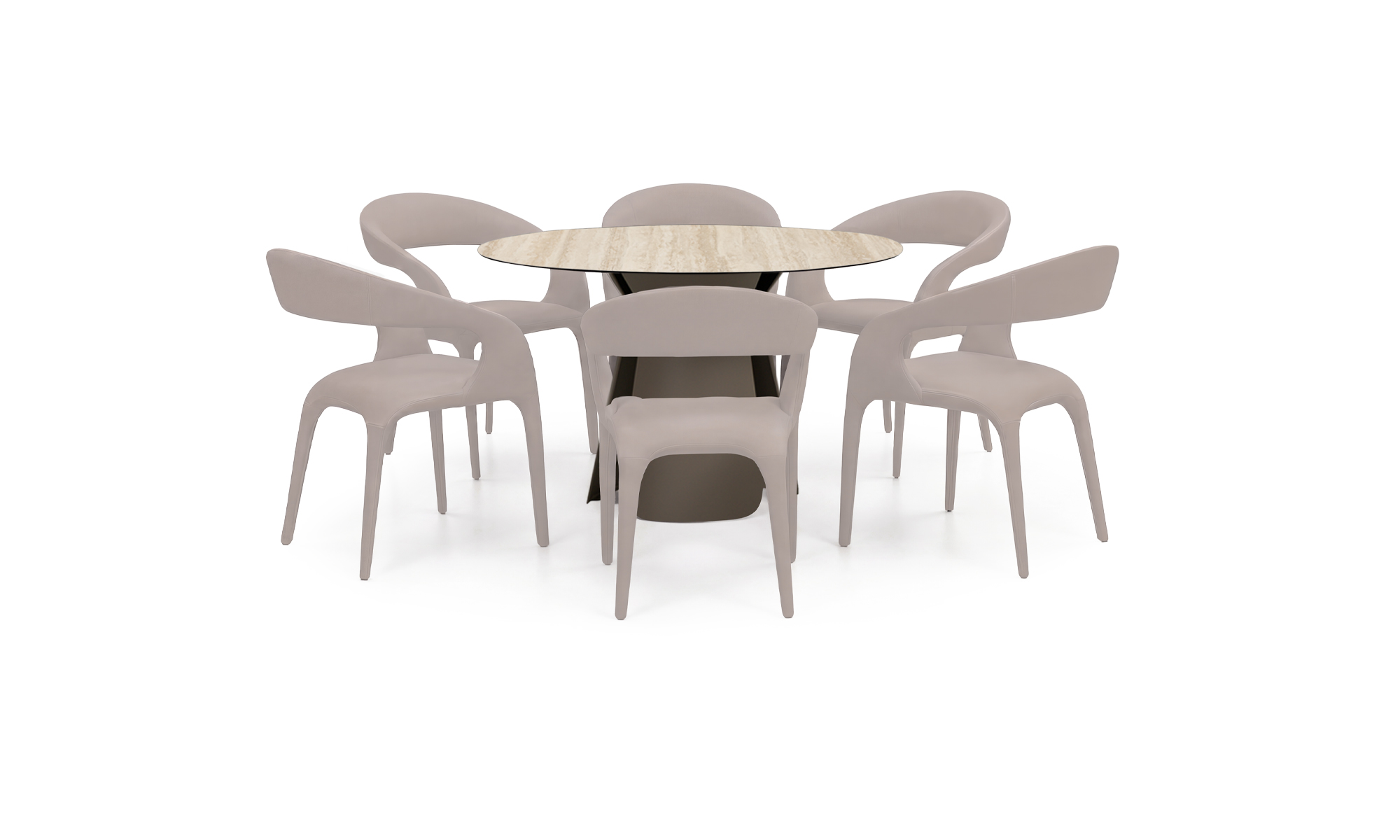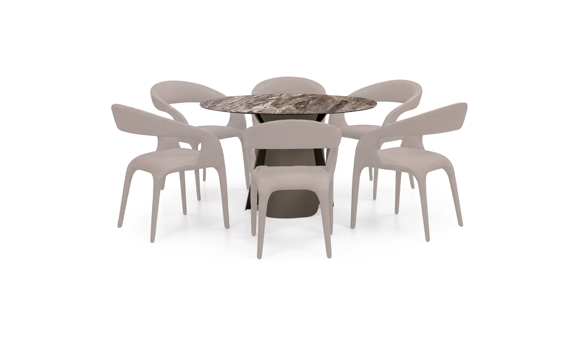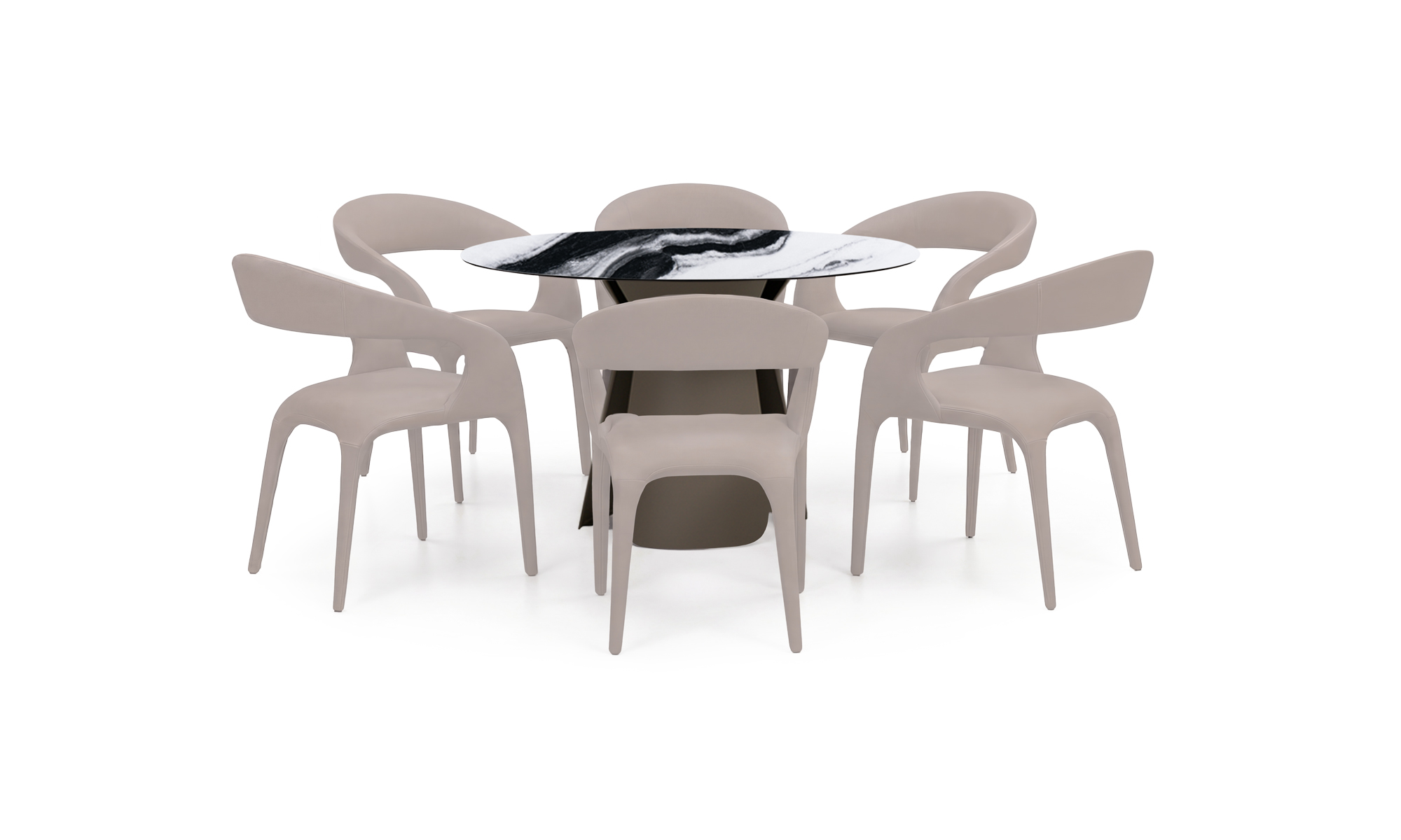 | Madera y pintura | Tapa en cerámica sinterizada, con acabado mate y vetas naturales tipo mármol.- Estructura metálica, pintada en negro y Taupe mate. |