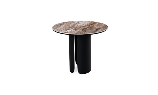 | Estructura | Estructura metálica, pintada en negro mate y Taupe / Tapa en cerámica sinterizada, con acabado mate y vetas naturales tipo mármol. |