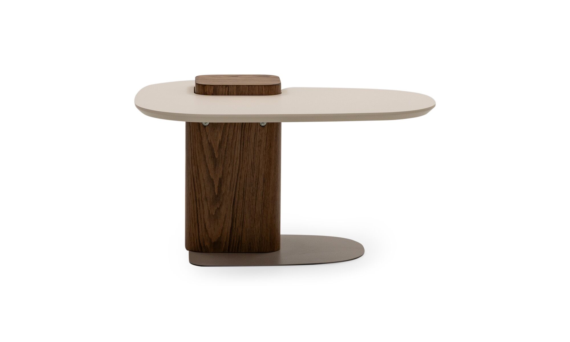 Es una pieza versátil que complementa el espacio con un diseño contemporáneo y funcional. Su formato compacto la hace ideal para acompañar salas o habitaciones, ofreciendo una superficie práctica sin perder ligereza visual.
