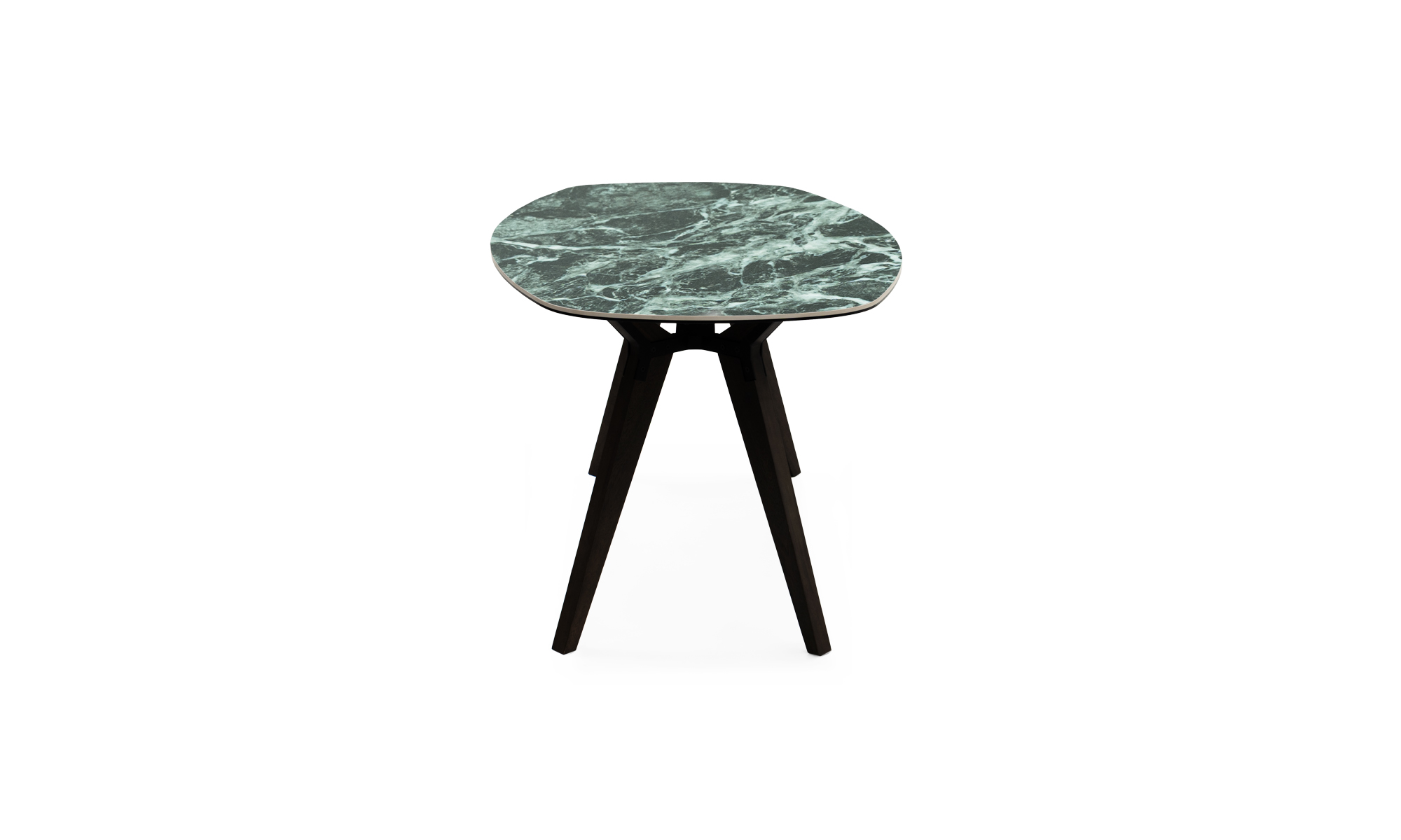| Madera y pintura | Patas en madera sólida Flor Morado > Estructura en Pino Radiata Chileno, reforestada seca e inmunizada > Sellador acrílico y laca poliéster,Tapa en cerámica sinterizada, con acabado mate y vetas naturales tipo mármol. |