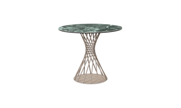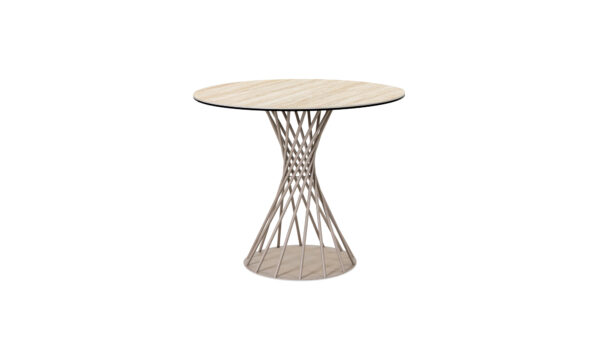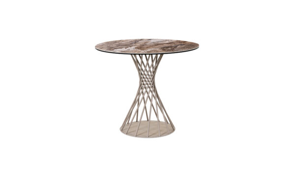 Tapa en cerámica sinterizada, con acabado mate y vetas naturales tipo mármol.- Estructura metálica, pintada en negro y Taupe mate.