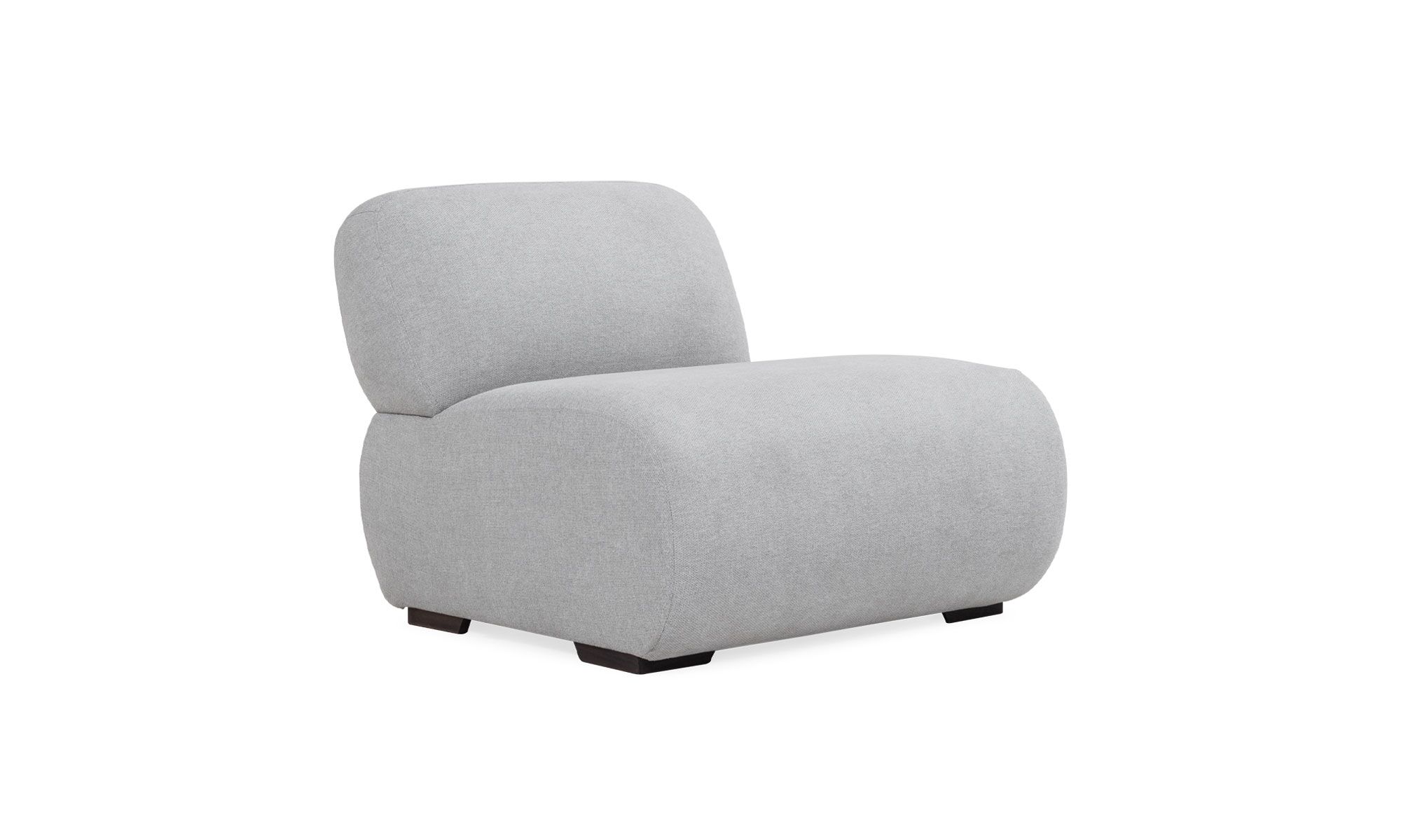 Poltrona Emma con Brazo de la marca Aristas, vista en perspectiva diagonal. Presenta un diseño elegante de líneas curvas con un respaldo alto, cojines acolchados y patas discretas en madera.