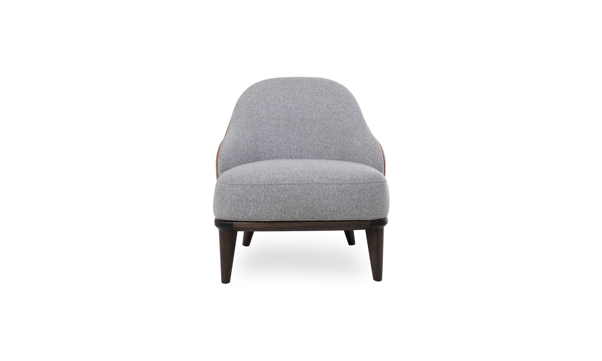 La Poltrona Valencia destaca por su diseño moderno y su armoniosa combinación de telas. Su silueta envolvente ofrece confort, mientras que sus líneas limpias y patas en madera aportan un estilo contemporáneo único.