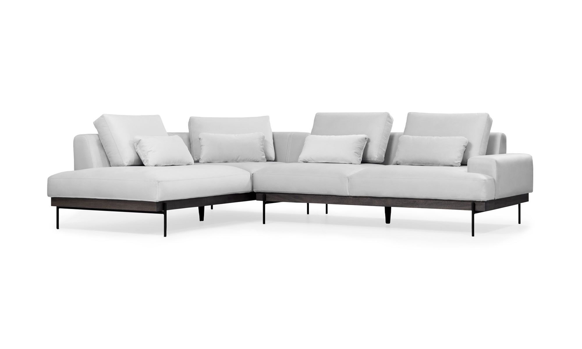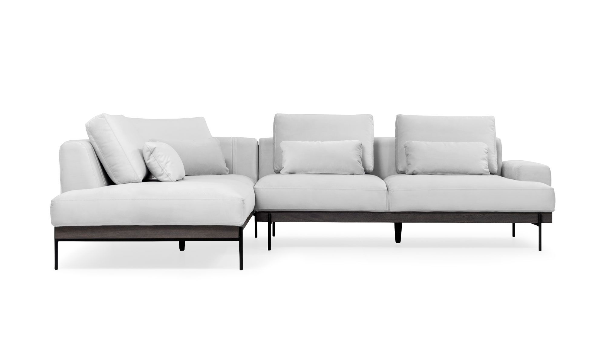 La Sala en L Maia fusiona alto confort con estilo moderno y auténtico. Sus líneas limpias y base en madera se combinan con patas metálicas, creando una pieza que evoca balance y un toque industrial distintivo.