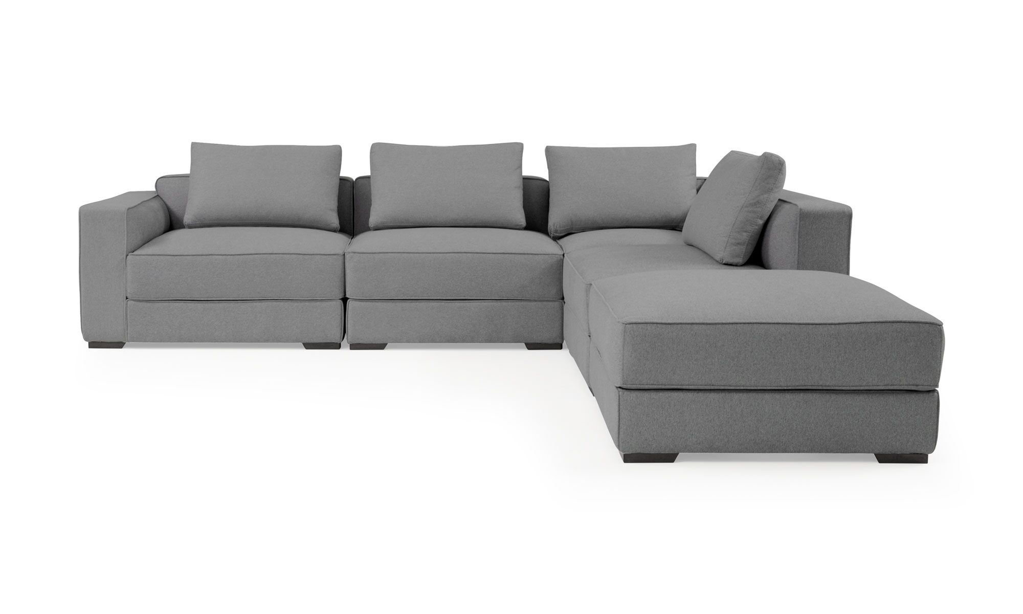 La Sala en L Roma 5 Módulos presenta un diseño imponente y sofisticado. Sus módulos independientes permiten versatilidad, mientras que sus resortes encapsulados ofrecen alto confort y un descanso inigualable.
