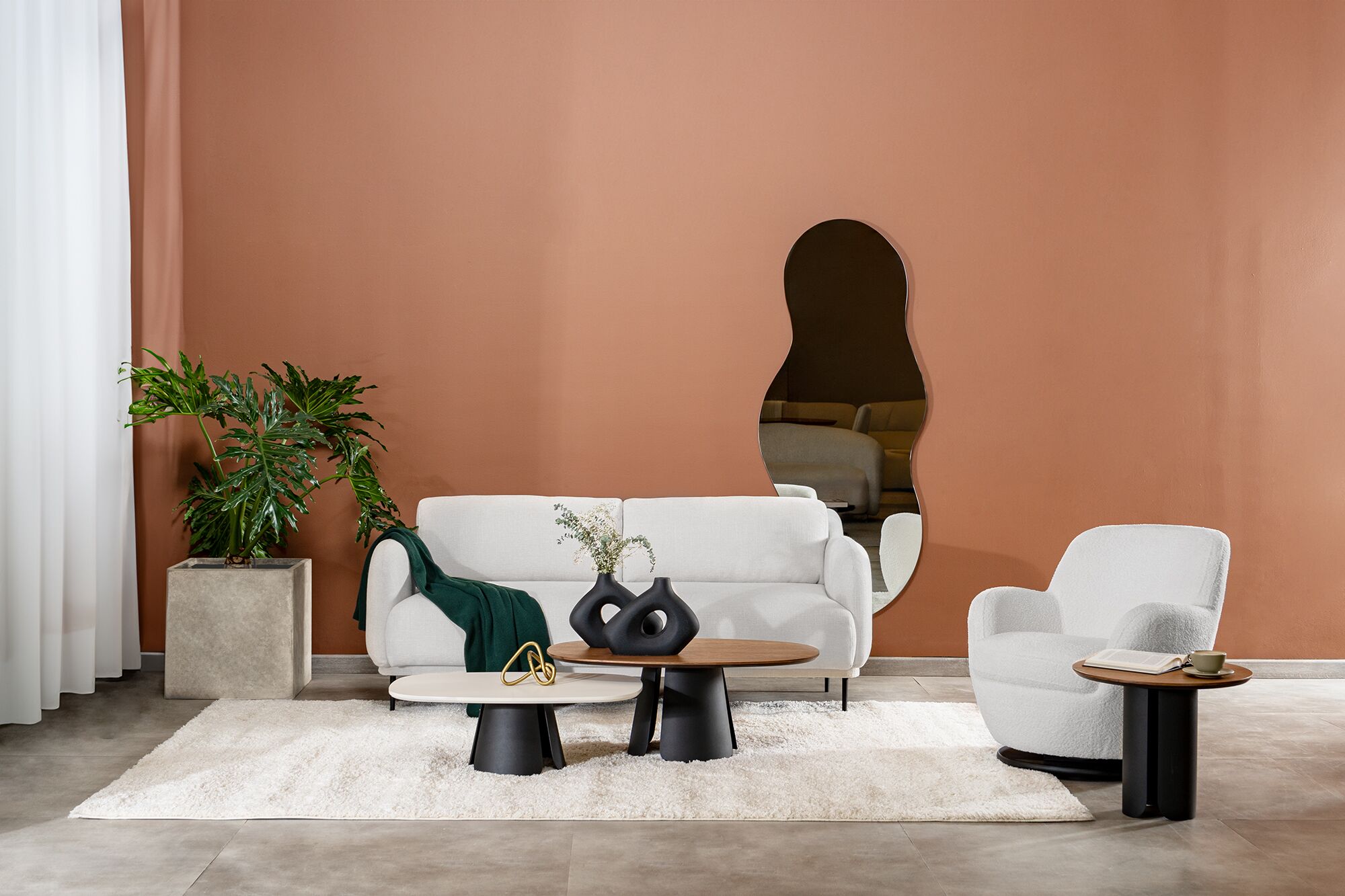 El Sofá Bilbao equilibra minimalismo y confort. Sus líneas curvas invitan al descanso, mientras sus patas metálicas añaden un toque de sofisticación, creando un ambiente acogedor y elegante.