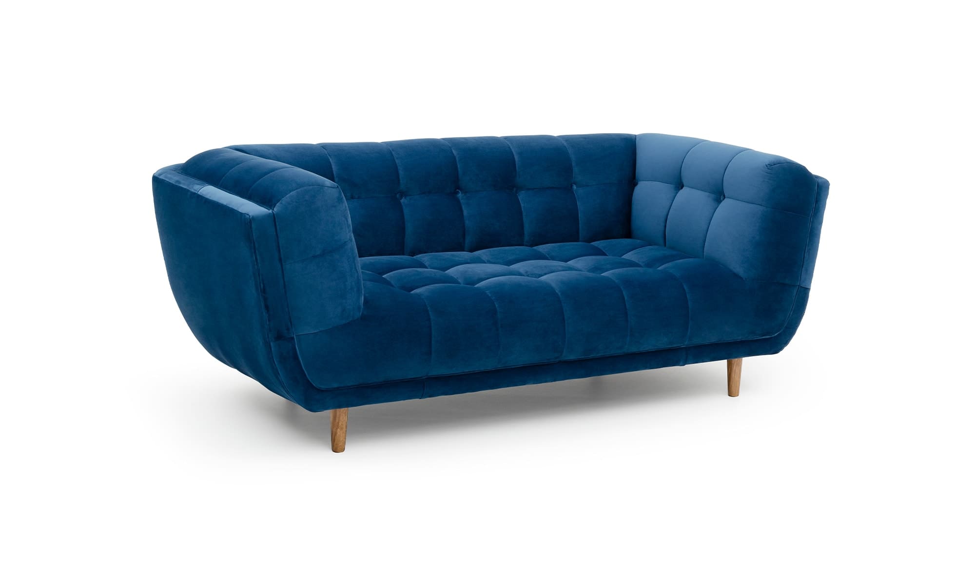 Sofá Cronos une el alto diseño y la sofisticación de un sofá capitoneado en tela tipo velvet con cuadrados perfectos.