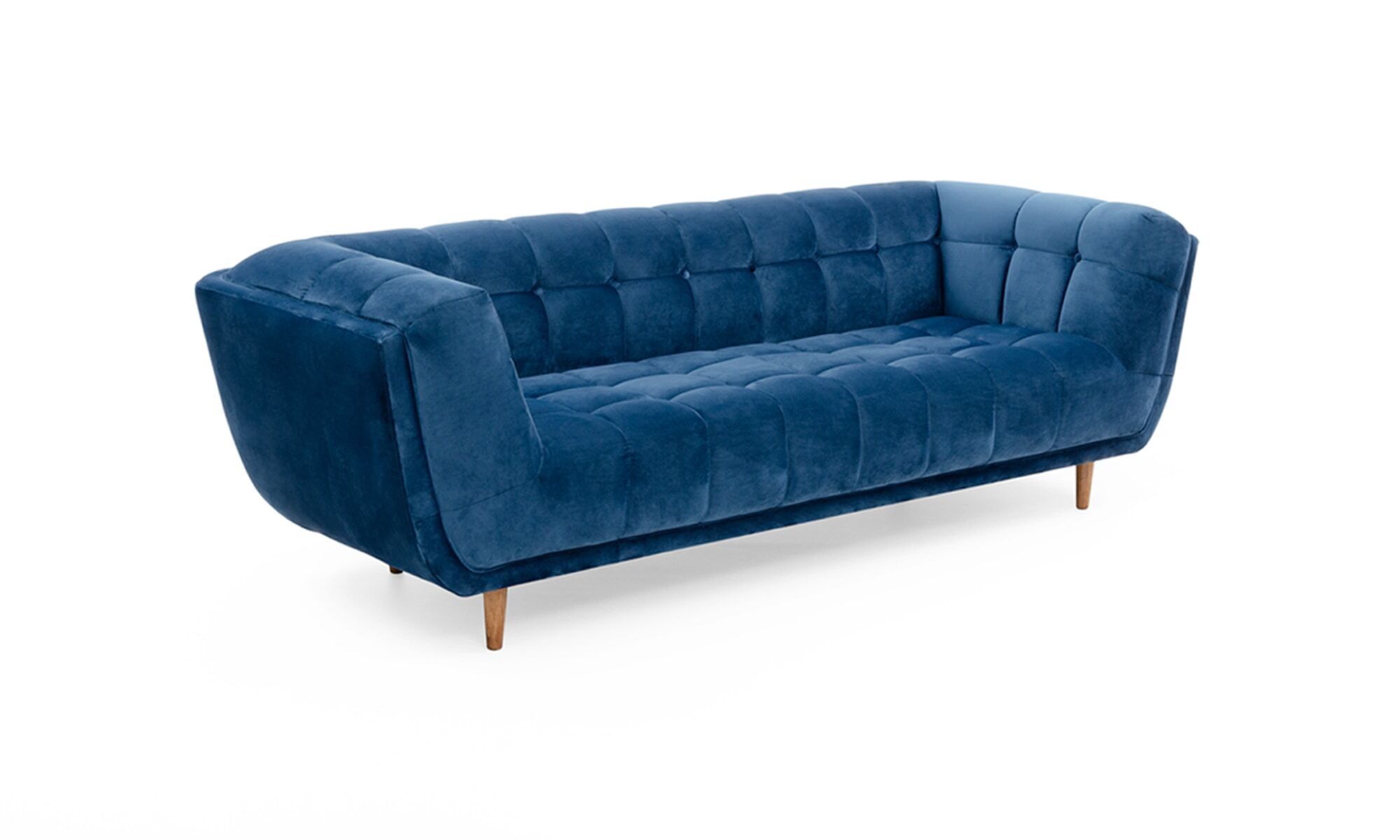 Sofá Cronos une el alto diseño y la sofisticación de un sofá capitoneado en tela tipo velvet con cuadrados perfectos.