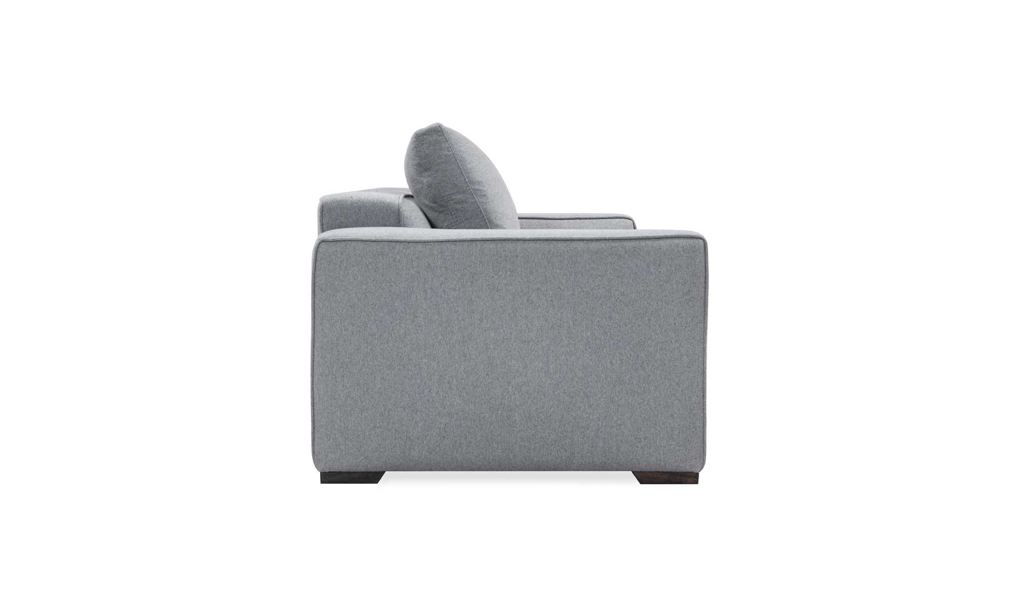 Estructura en madera de pino radiata chileno, inmunizada y secada al horno.Espumas industrializadas de alta densidad y resortes encapsulados independientes.Tapizado en telas con altos estándares de calidad en diferentes colores y texturas a su elección. Patas de madera flor morado.